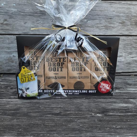Doos met 4 zakken drop - 10.95. Zolang de voorraad strekt.